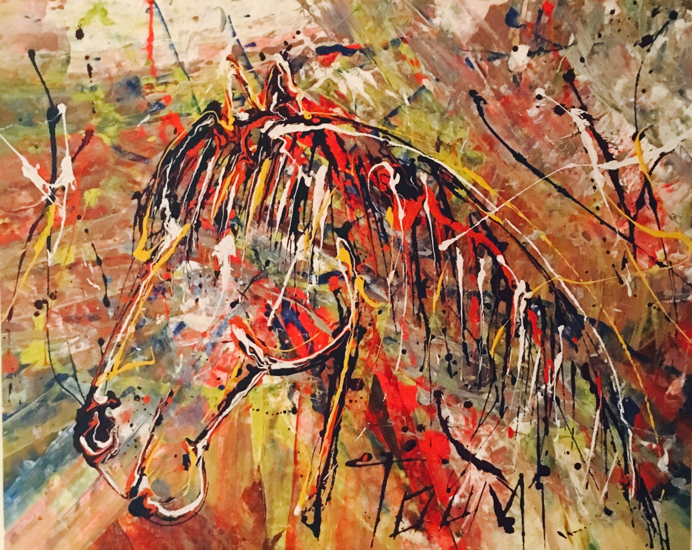 On this side, we may look at the splashes of colour, the strokes that don’t make sense, the messiness of it all and not comprehend where the painter is headed or what on earth is taking shape. Indeed, if I look at Toumi’s painting, it was a mess before it was a masterpiece. Only when it is finished, we see the purpose of the individual strokes.